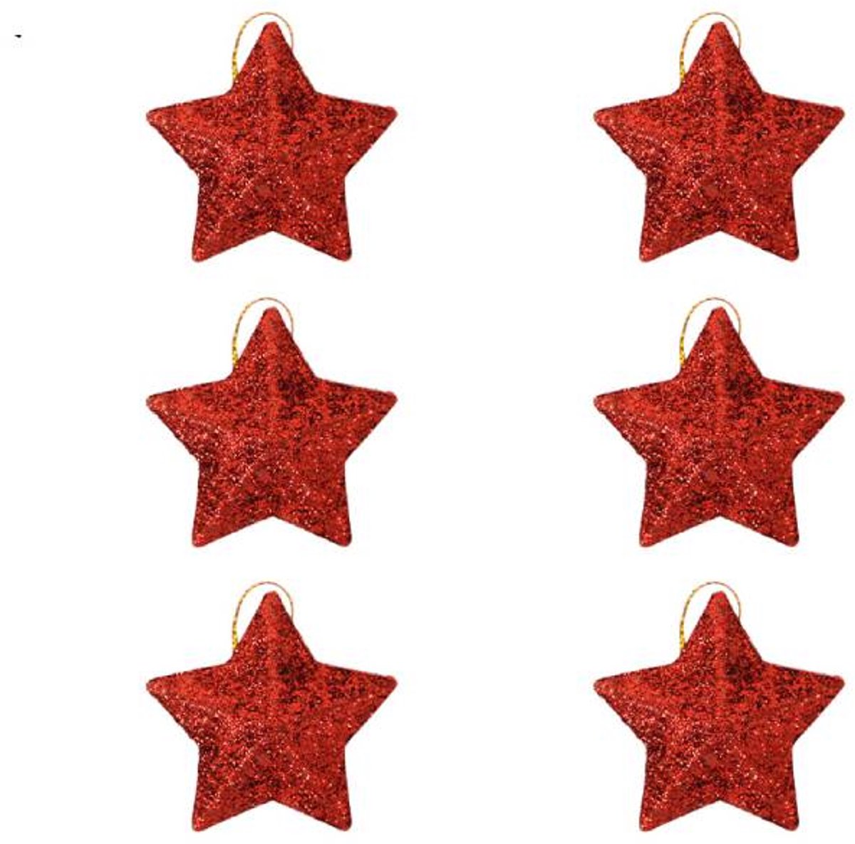 6 stuks kerstboom mini ster decoratie hanger kerstversiering kerstfeest doe-het-zelf knutselaccessoires (rood)