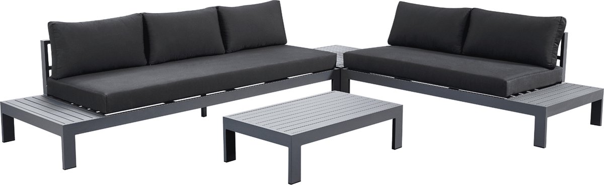 Geniet van luxe en comfort in je buitenruimte met de Boender Outdoor River Hoek Loungeset 4-delig. Deze stijlvolle platform loungeset