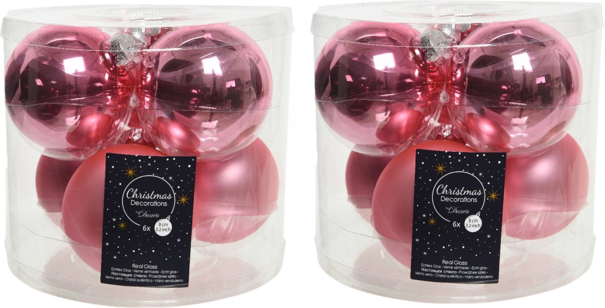 12x stuks kerstballen lippenstift roze van glas 8 cm – mat en glans – Kerstversiering/boomversiering