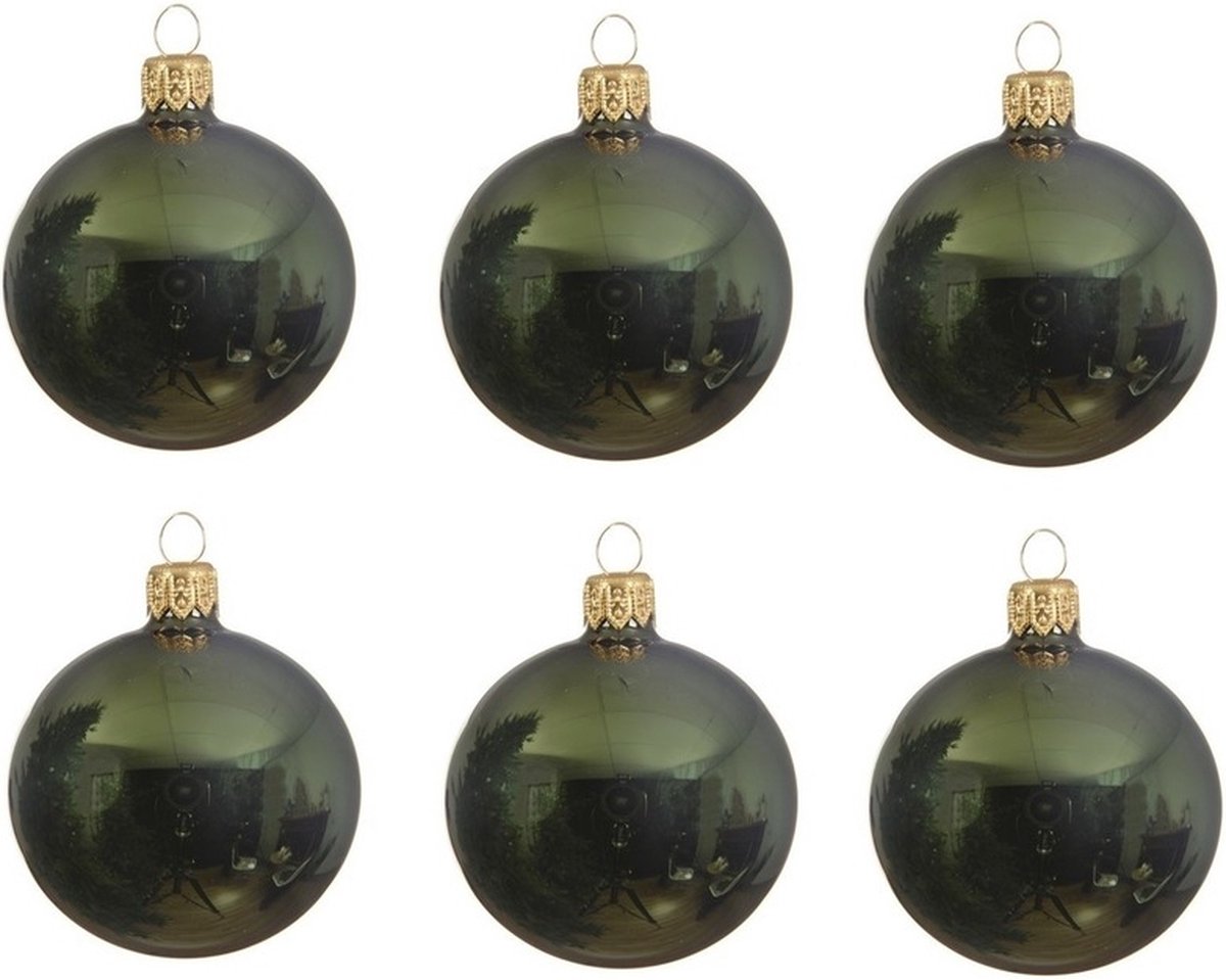 12x Donkergroene glazen kerstballen 8 cm – Glans/glanzende – Kerstboomversiering donkergroen
