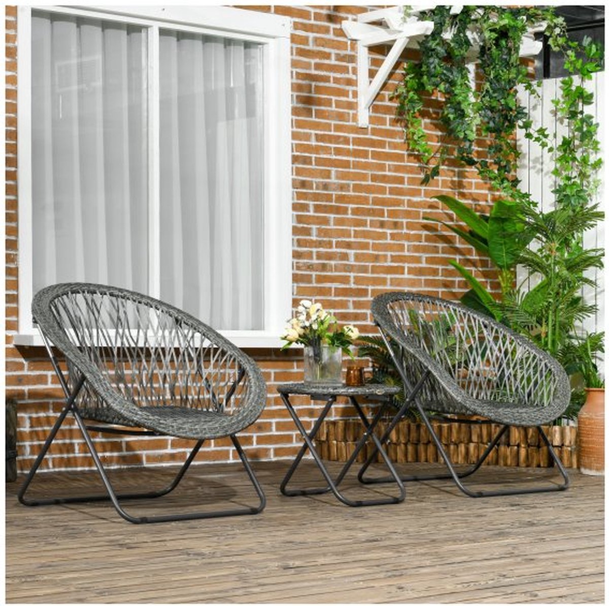 3-Delige Bistroset Voor Buiten – Stalen Tafel & 2 Klapstoelen – Compact & Weerbestendig – Grijs