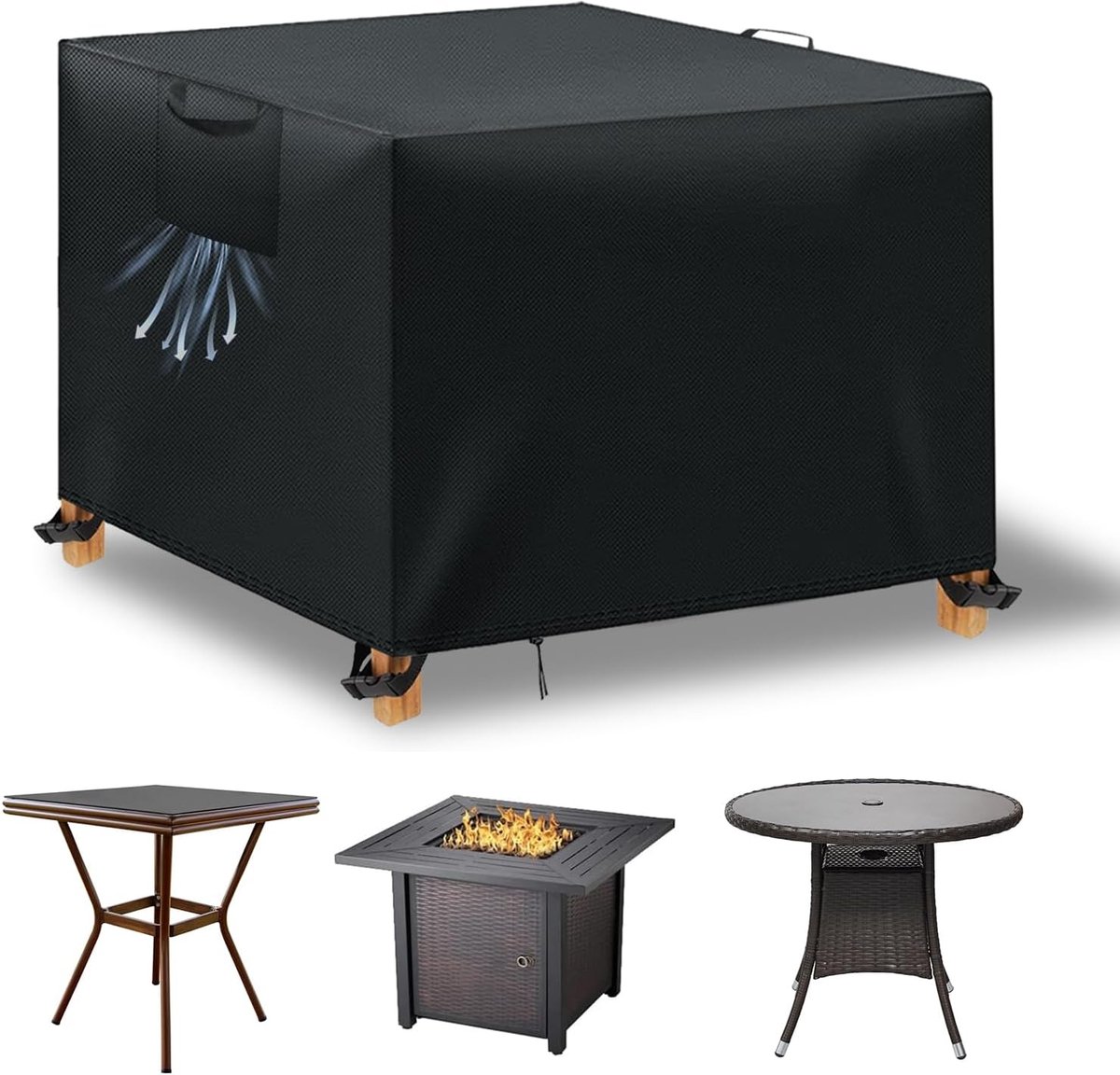 Afdekking van tuinmeubelen, waterdicht, afdekzeil, tuinmeubelen, winddicht, anti-uv, zware belasting, 420D Oxford-weefsel, voor zitgroep, tuintafels, terrasmeubels, zwart, 70 x 70 x 70 cm
