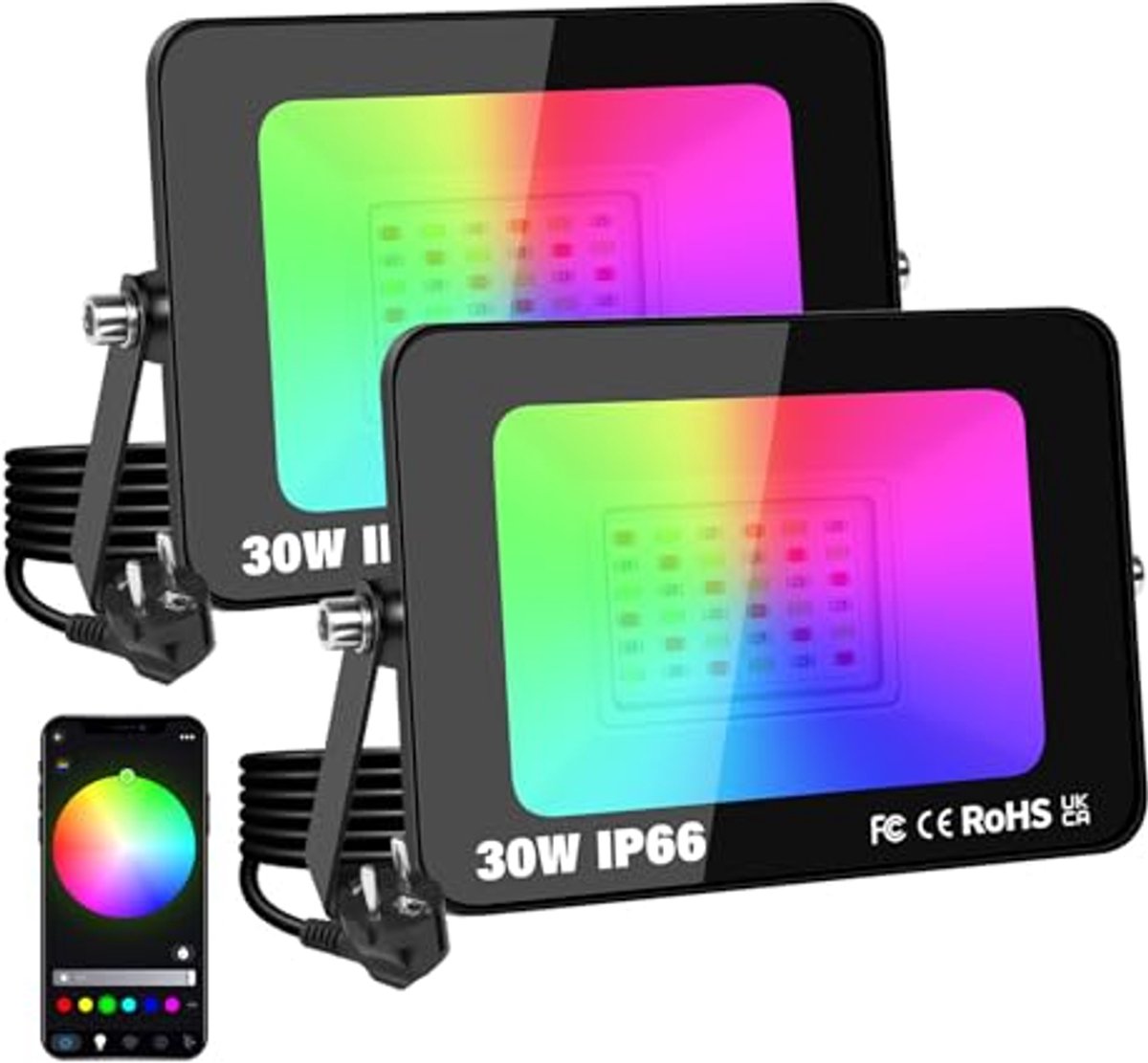 Illuminate your outdoor space with our 30W LED Outdoor Floodlights featuring RGB color-changing capabilities. Control with ease using the accompanying app for smart garden lighting.