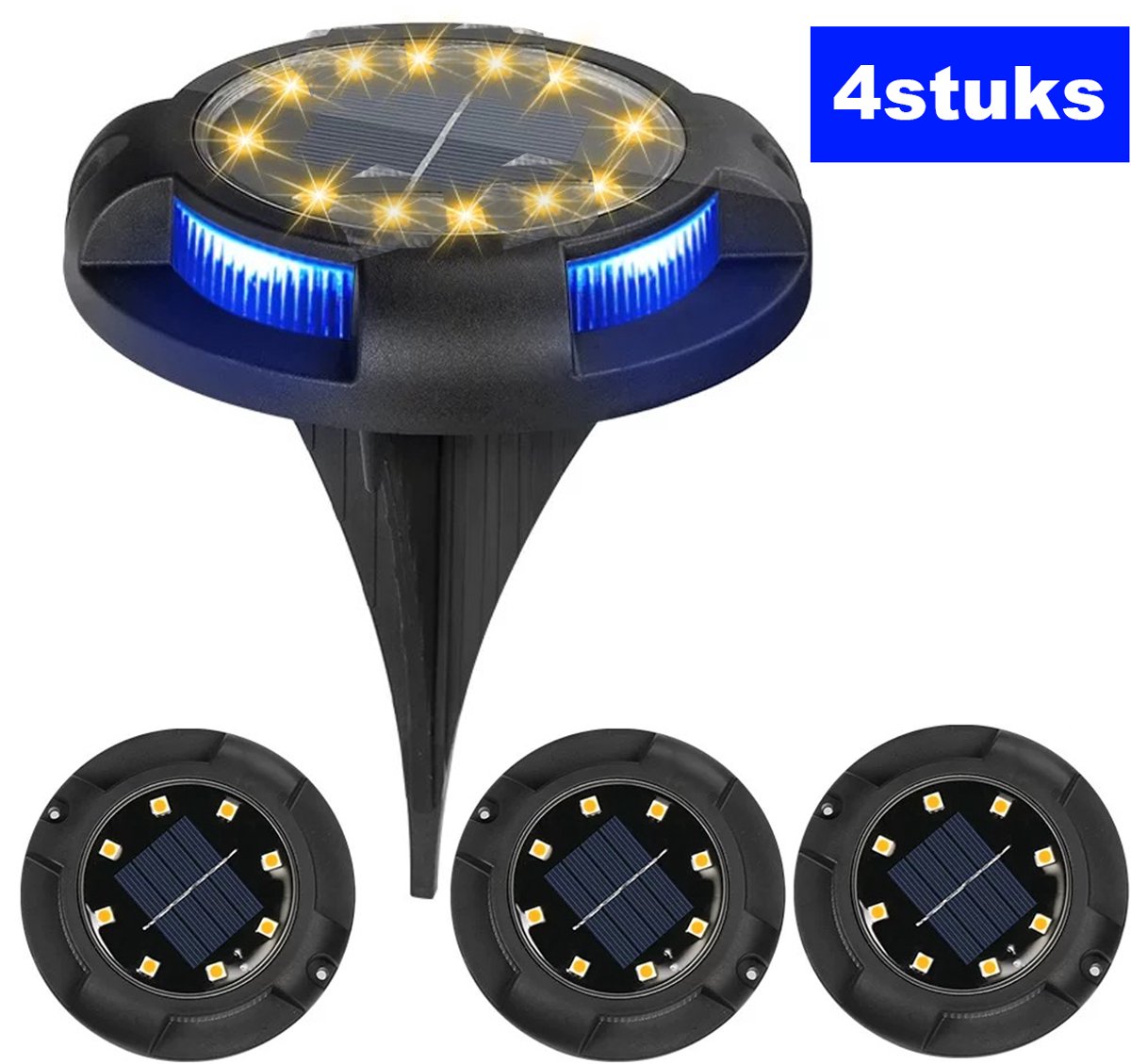 Illuminate your outdoor space with this set of 4 Solar Ground Spots. Made of durable ABS material, these solar-powered ground lights by Luckystar bring a touch of elegance to your garden or outdoor areas.
