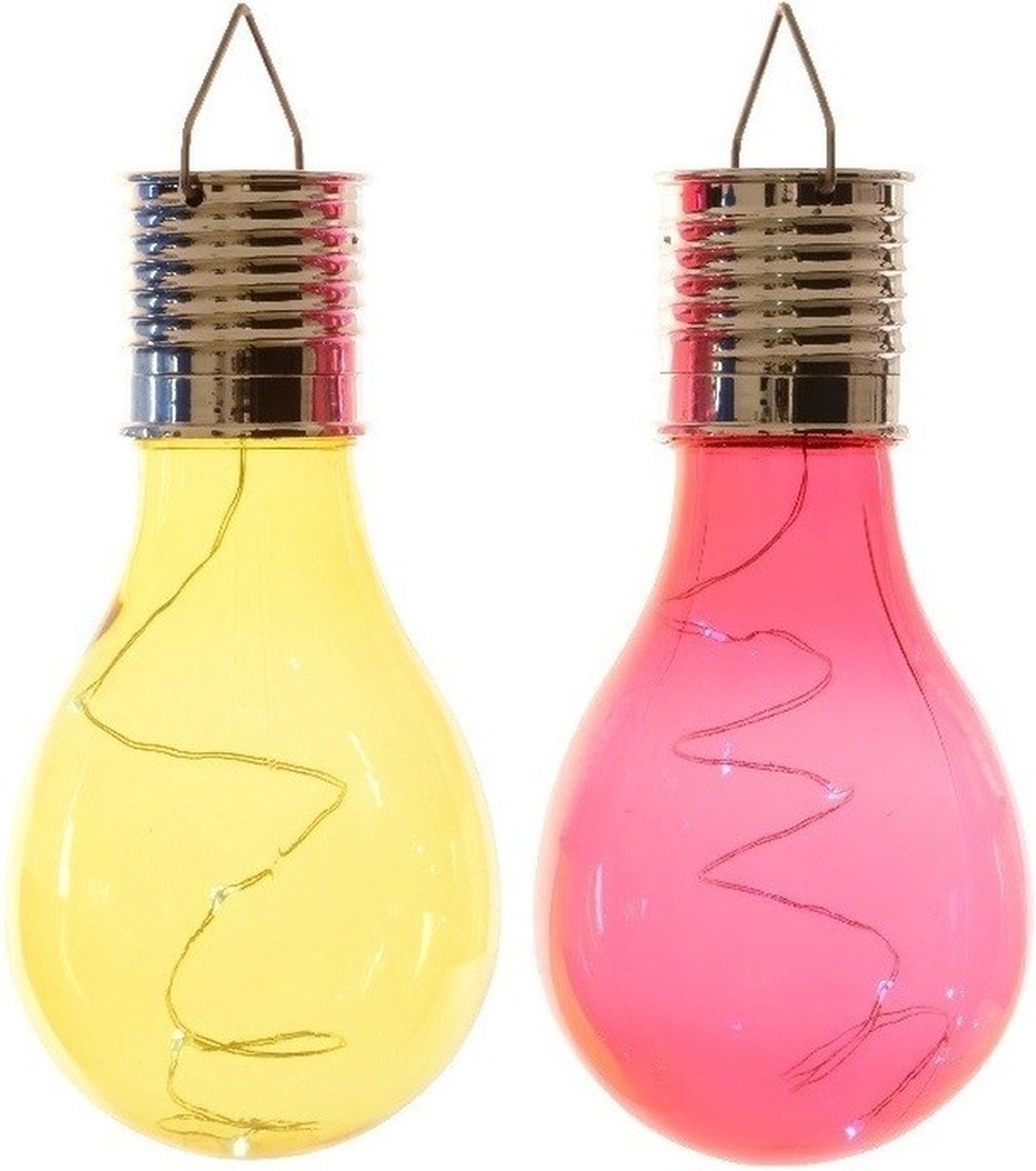 Illuminate your outdoor space with these 2x yellow/red LED pear-shaped solar lights from Lumineo. Measuring 14cm, these garden lamps are powered by solar energy for eco-friendly lighting.