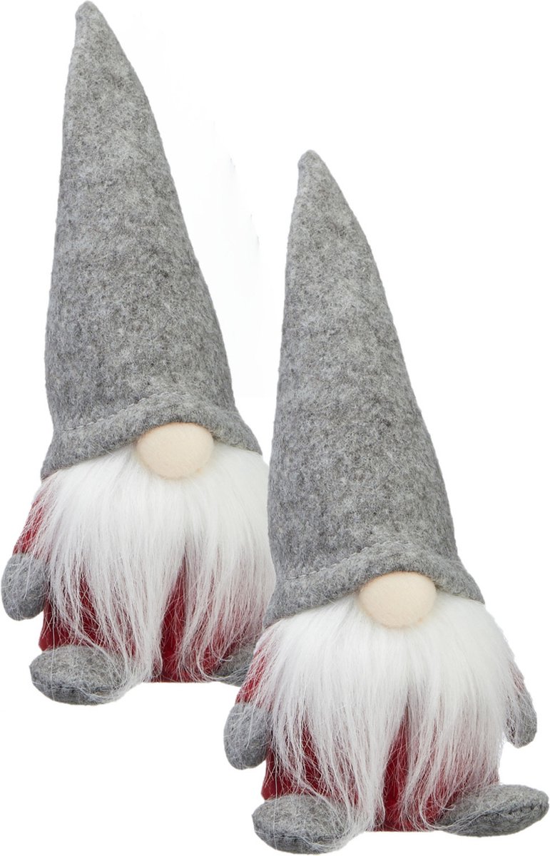 2x stuks pluche gnome/dwerg decoratie poppen/knuffels met grijze muts 18 cm – Kerstgnomes/kerstdwergen/kerstkabouters