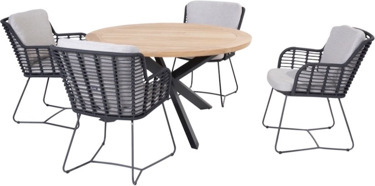 Fabrice Prado dining tuinset teak 130xH75 cm rond 5 delig antraciet 4 Seasons Outdoor