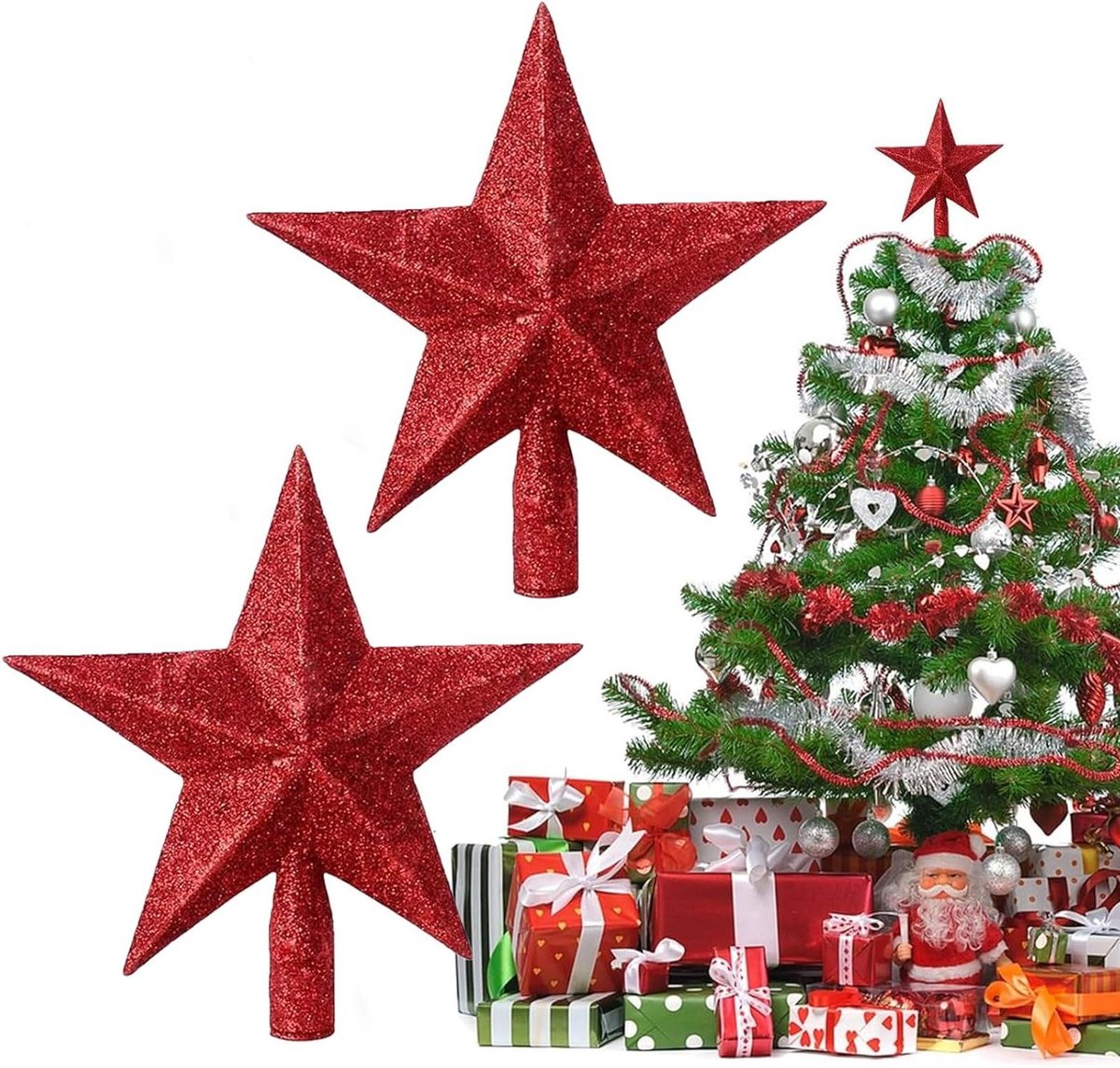 Elke kerstboomdecoratie is gedetailleerd vormgegeven met schitterende sterren die prachtig oplichten als ze worden blootgesteld aan het licht. De glanzende afwerking voegt een vleugje glamour toe aan je kerstboom, waardoor deze er feestelijk en betoverend uitziet.