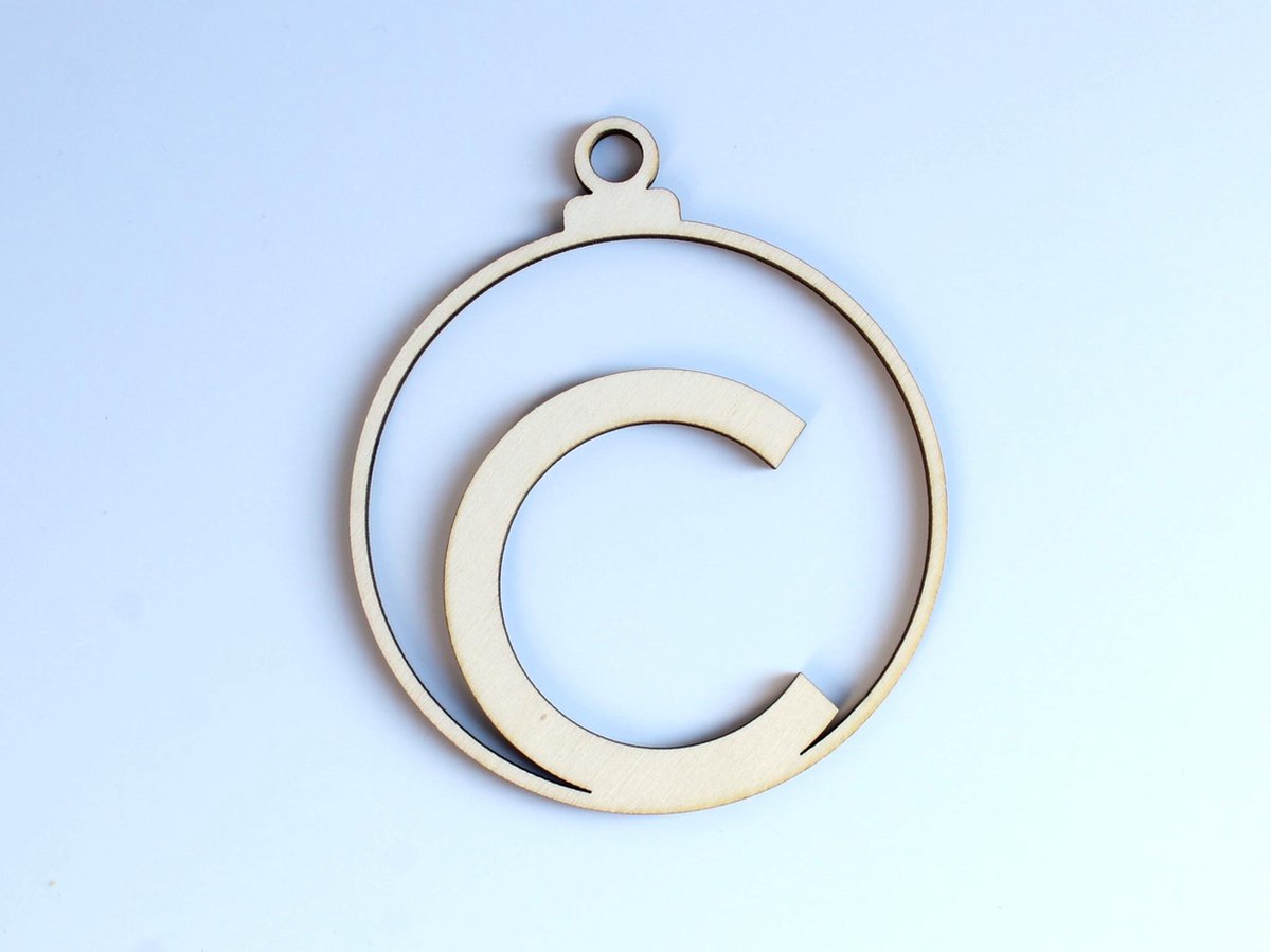HOUTEN KERSTVERSIERING / WOODEN CHRISTMAS DECORATION – KERSTBAL / CHRISTMAS TREE BAUBLE – Letter C – 9cm – LICHT HOUT / NATURAL WOOD – HOUTEN HANGERS – KERSTBOOM – ALFABET / ALPHABET – KERSTDECORATIE – NAAM
