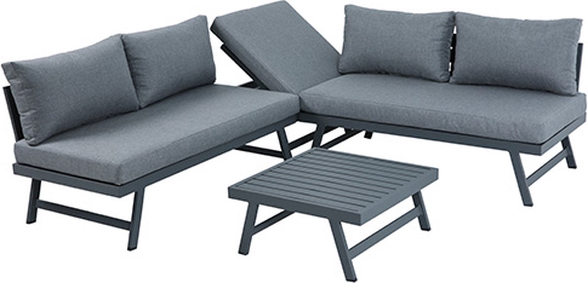De loungeset is vervaardigd van hoogwaardig aluminium, wat zorgt voor duurzaamheid en een moderne uitstraling. De bijgeleverde kussenset biedt niet alleen een comfortabele zitervaring, maar voegt ook een vleugje luxe toe aan je tuin of terras.