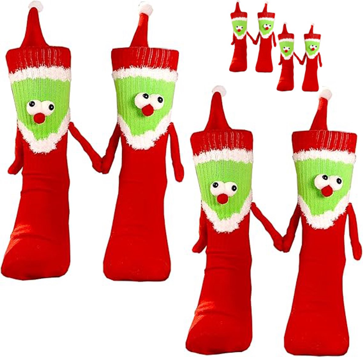 Deze set van 4 paar kerstsokken is perfect voor koppels die de feestdagen samen willen vieren. Met een uniek magnetisch ontwerp waarbij de sokken elkaar ‘hand in hand’ vasthouden, symboliseert deze set de warmte en verbondenheid van vriendschap en familie tijdens Kerstmis. De sokken zijn geschikt voor zowel mannen als vrouwen en zijn ideaal als cadeau voor geliefden, vrienden of zelfs als een speciaal familielid.