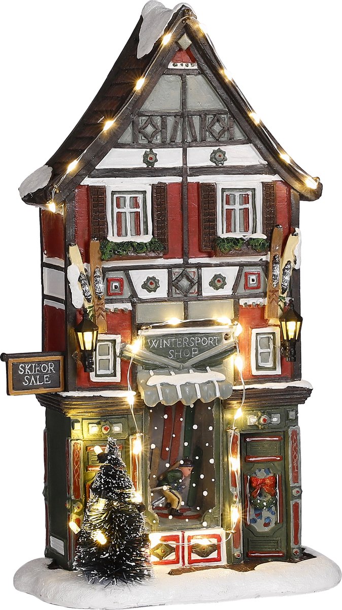 LuVille Kerstdorp Miniatuur Wintersportwinkel – L18 x B8 x H28 cm