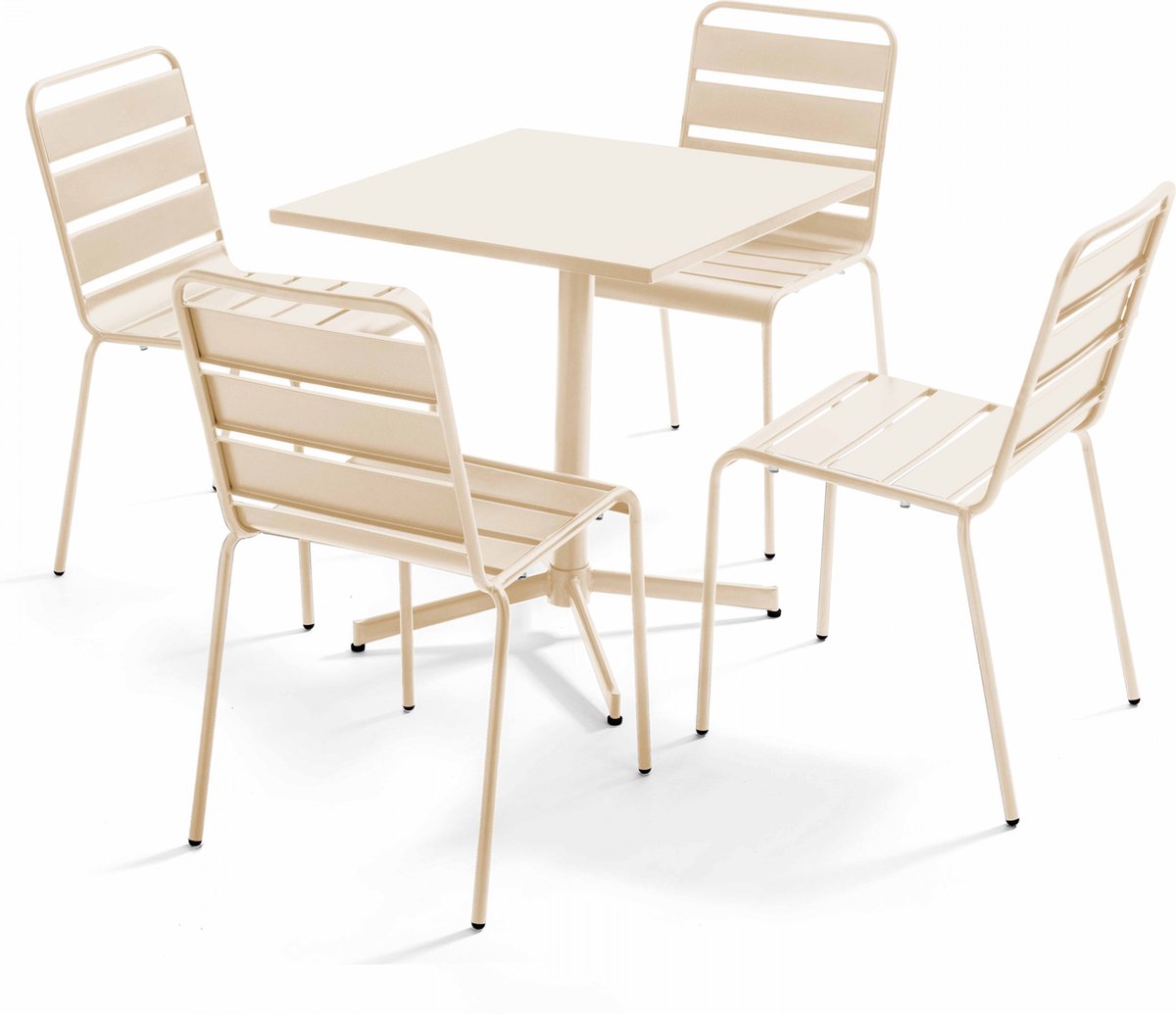 Oviala – Vierkante tafelset met 4 stoelen van ivoorkleurig metaal – Palavas