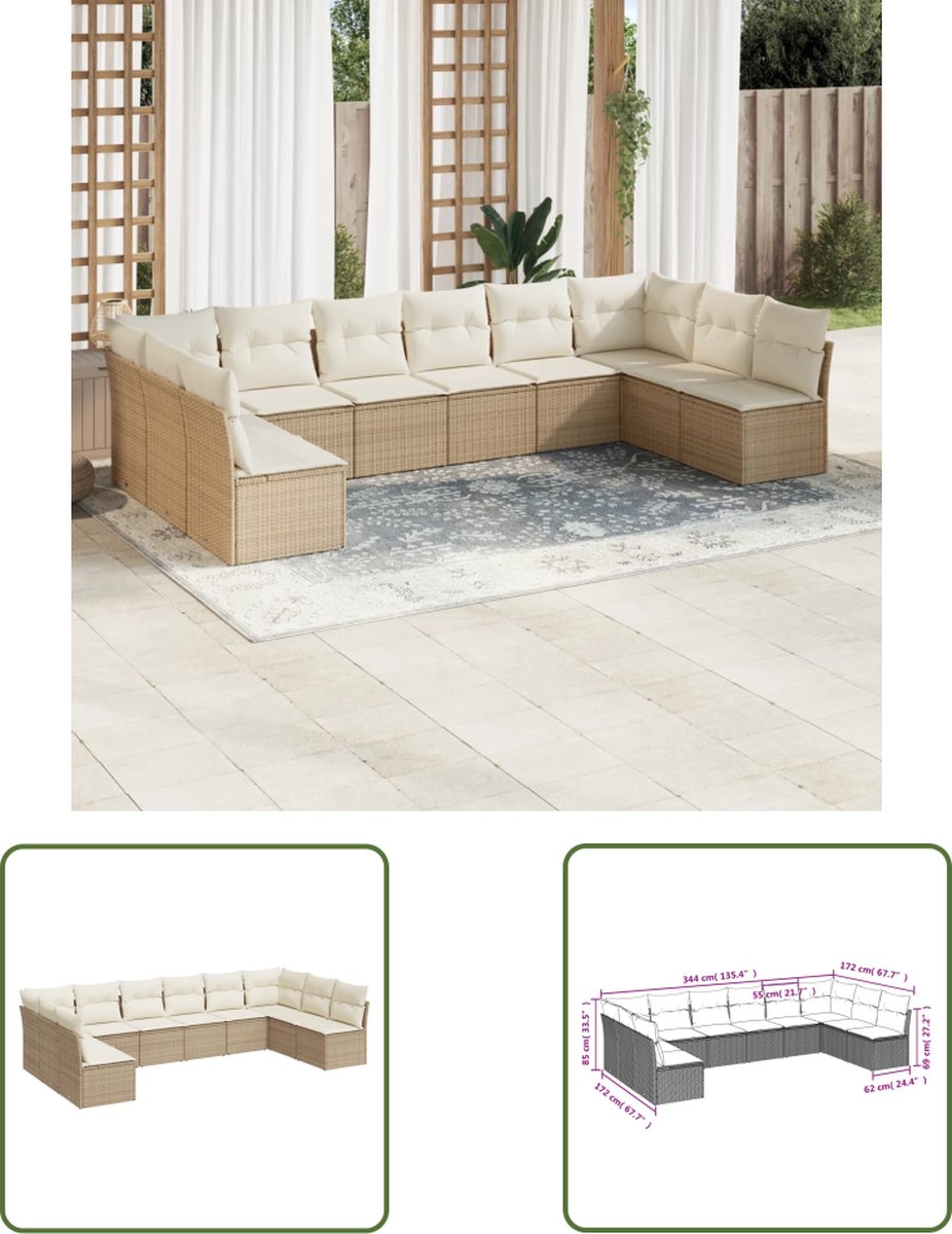 The Living Store 10-delige Loungeset met kussens poly rattan beige – Loungebank – Tuinset – Lounge Set – PE Rattan – Buitendecoratie