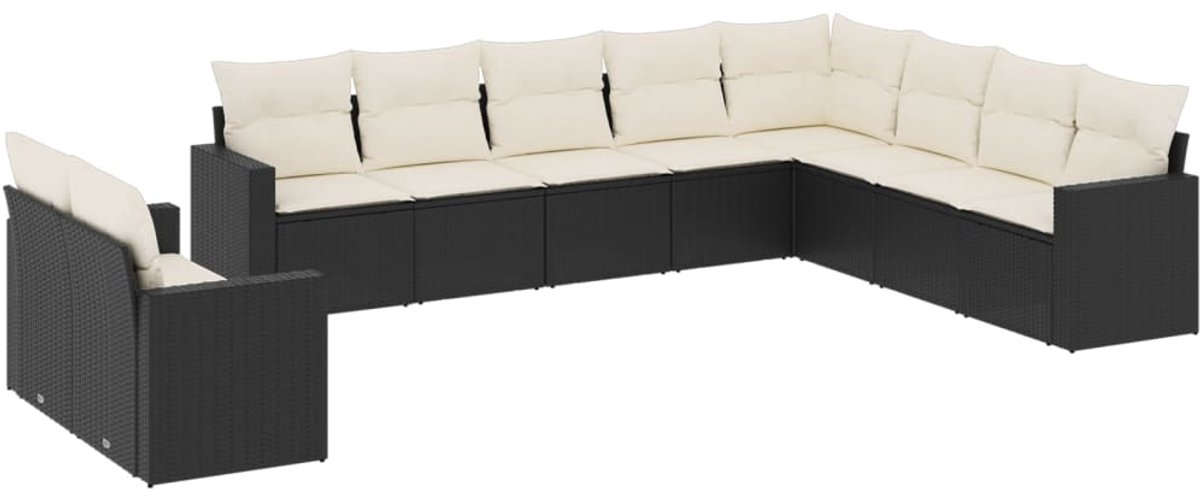 The Living Store 10-delige Loungeset met kussens poly rattan zwart – Loungeset – Tuinset – Lounge Bank – Buitendecoratie – Tuinmeubels