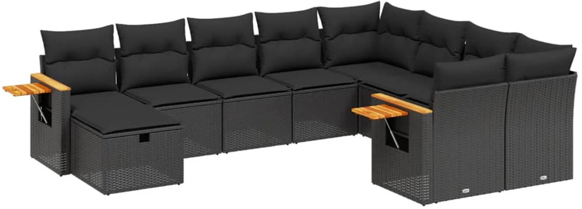 The Living Store 10-delige Loungeset met kussens poly rattan zwart – Loungeset – Tuinset – Lounge Set – Tuinmeubels – Outdoor Furniture