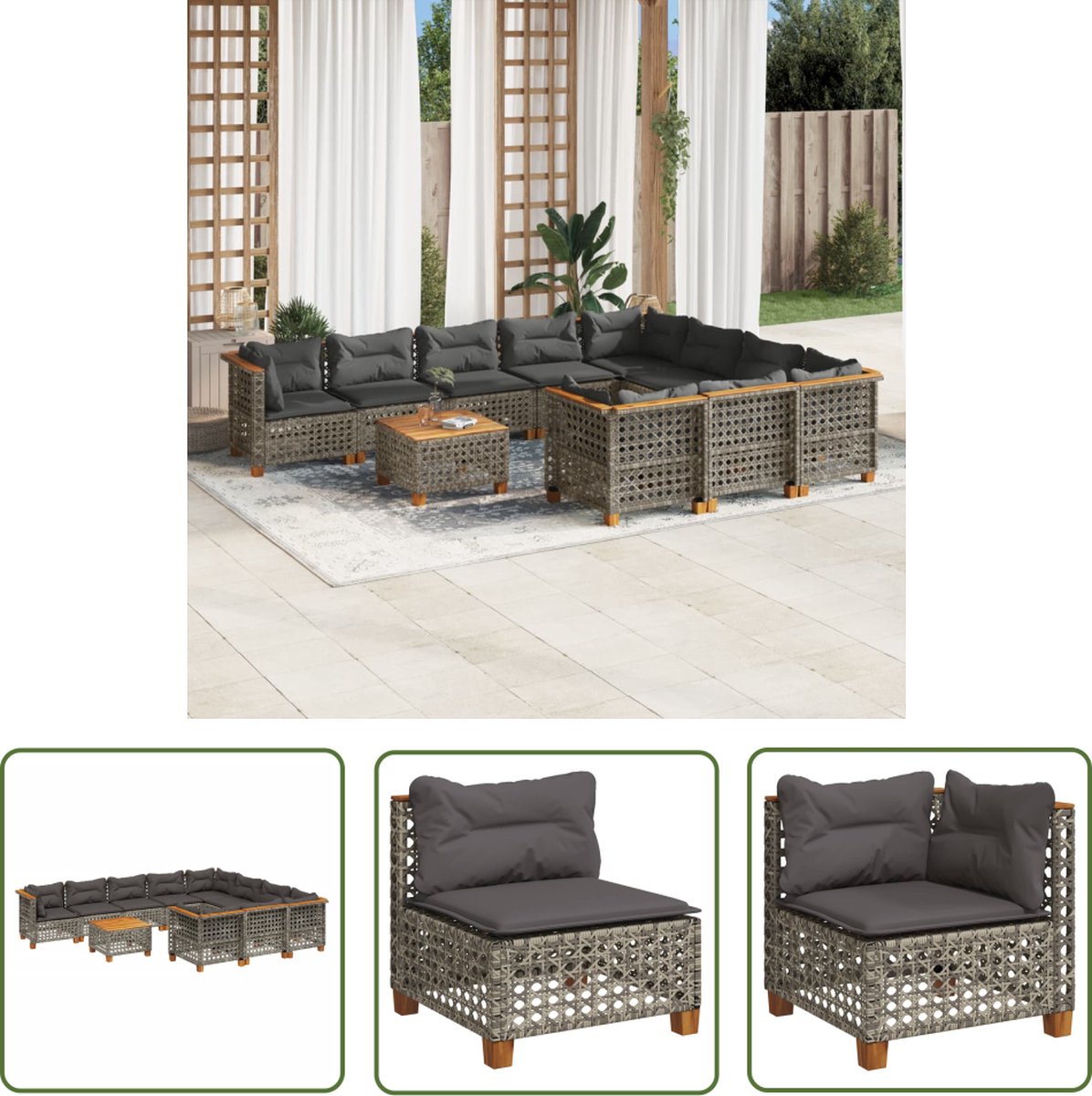 The Living Store 11-delige Loungeset met kussens poly rattan grijs – Loungebank – Lounge Set – Buitendecoratie – Tuinmeubels – Outdoor Furniture