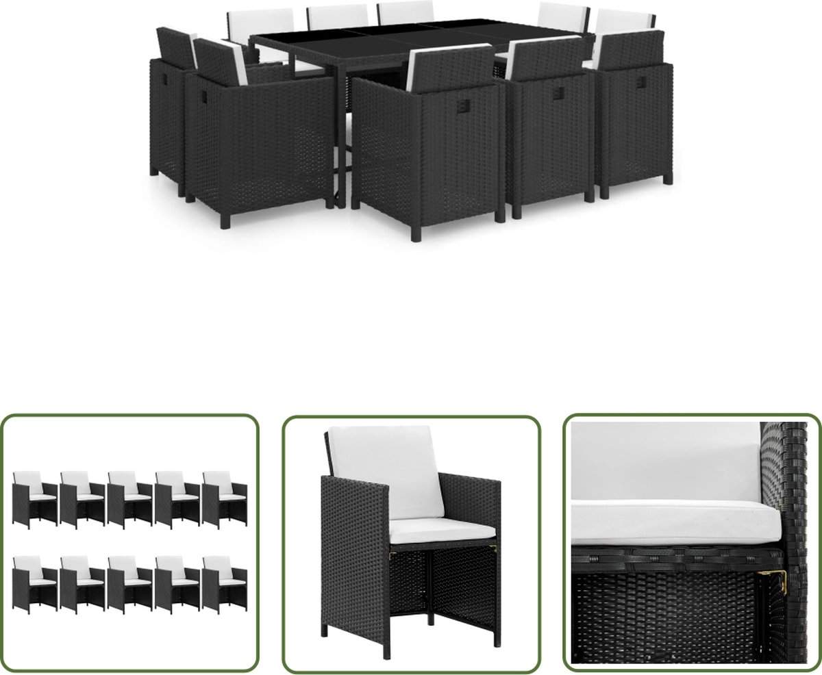 The Living Store 11-delige Tuinset met kussens poly rattan zwart – Rattan Meubels – Tuinset – Eetkamerset – Buitendecoratie – Lounge Set