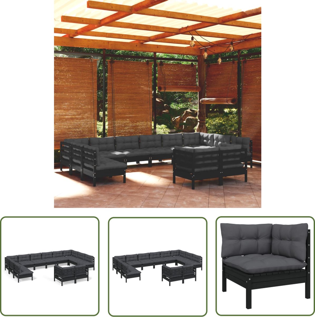 The Living Store 12-delige Loungeset met kussens massief grenenhout zwart – Loungeset – Tuinset – Houten Lounge Bank – Loungebank – Buis Meubel