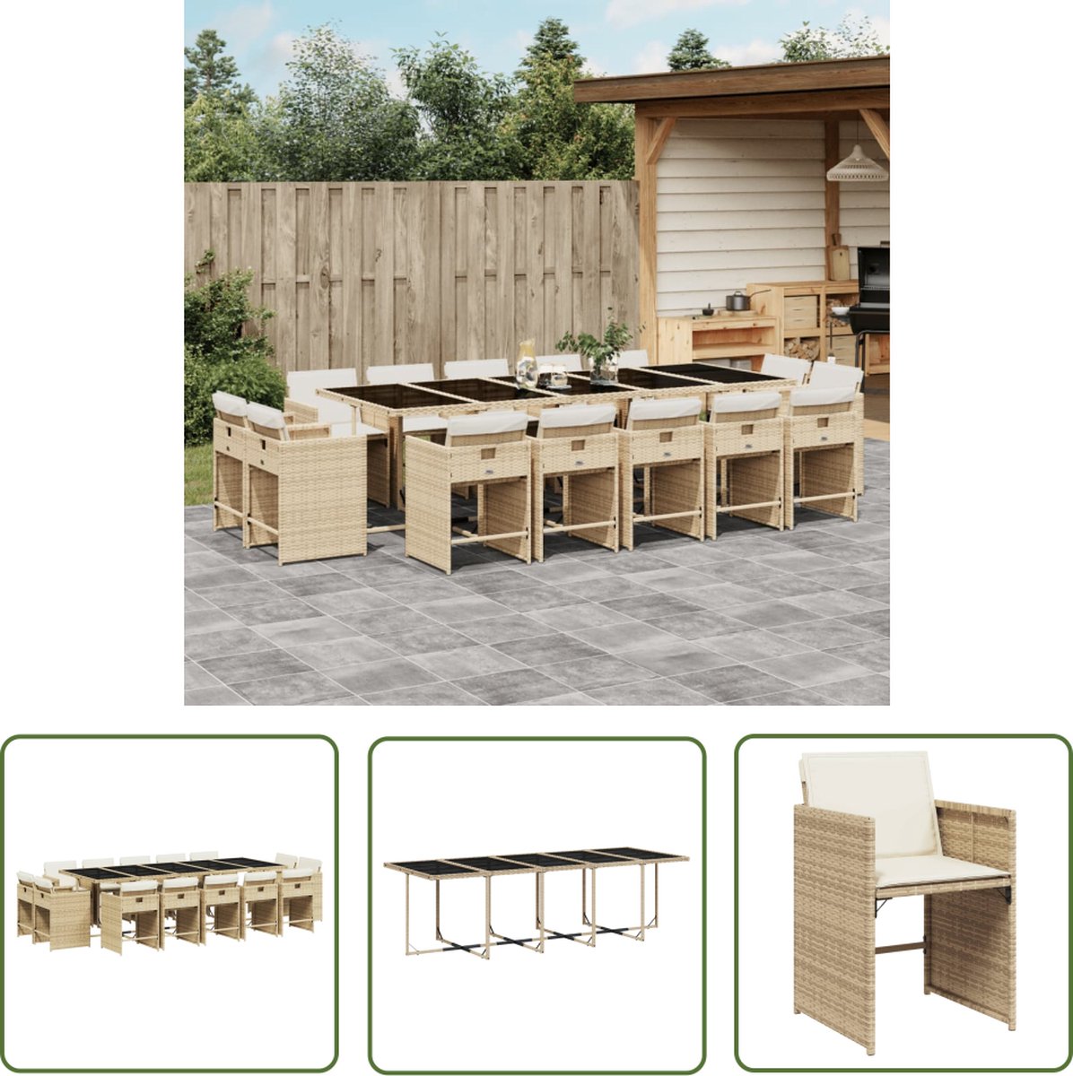 The Living Store 15-delige Tuinset met kussens poly rattan beige – Tuinset – Buitentafel – Lounge Set – Eetkamerset – Patio Furniture