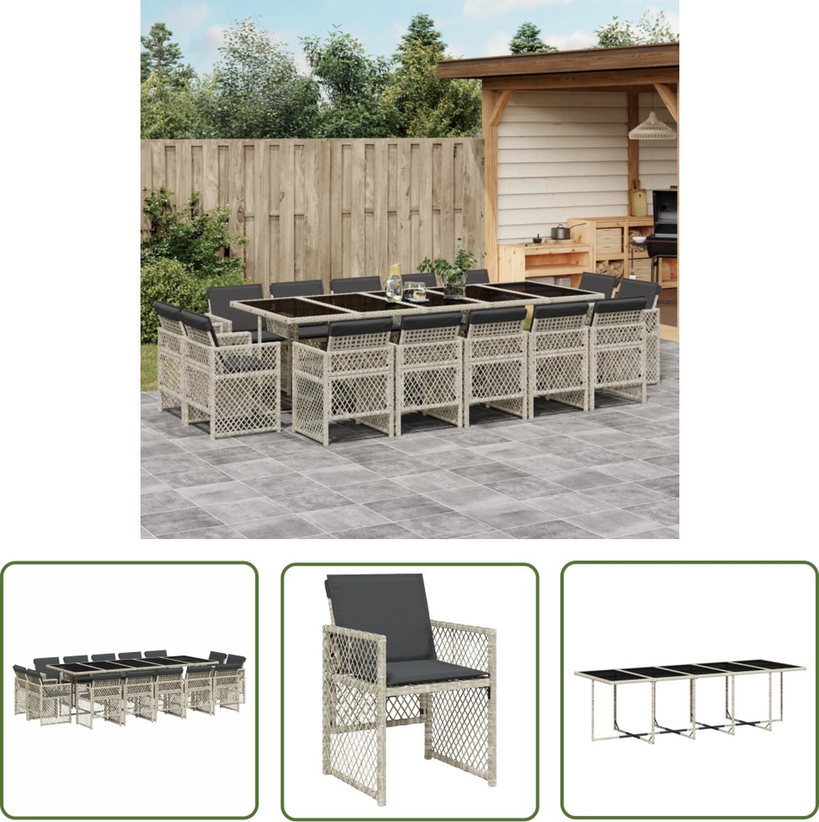 The Living Store 15-delige Tuinset met kussens poly rattan lichtgrijs – Tuinmeubels – Buitenkamer – Lounge Set – Eetgroep – Patio Set
