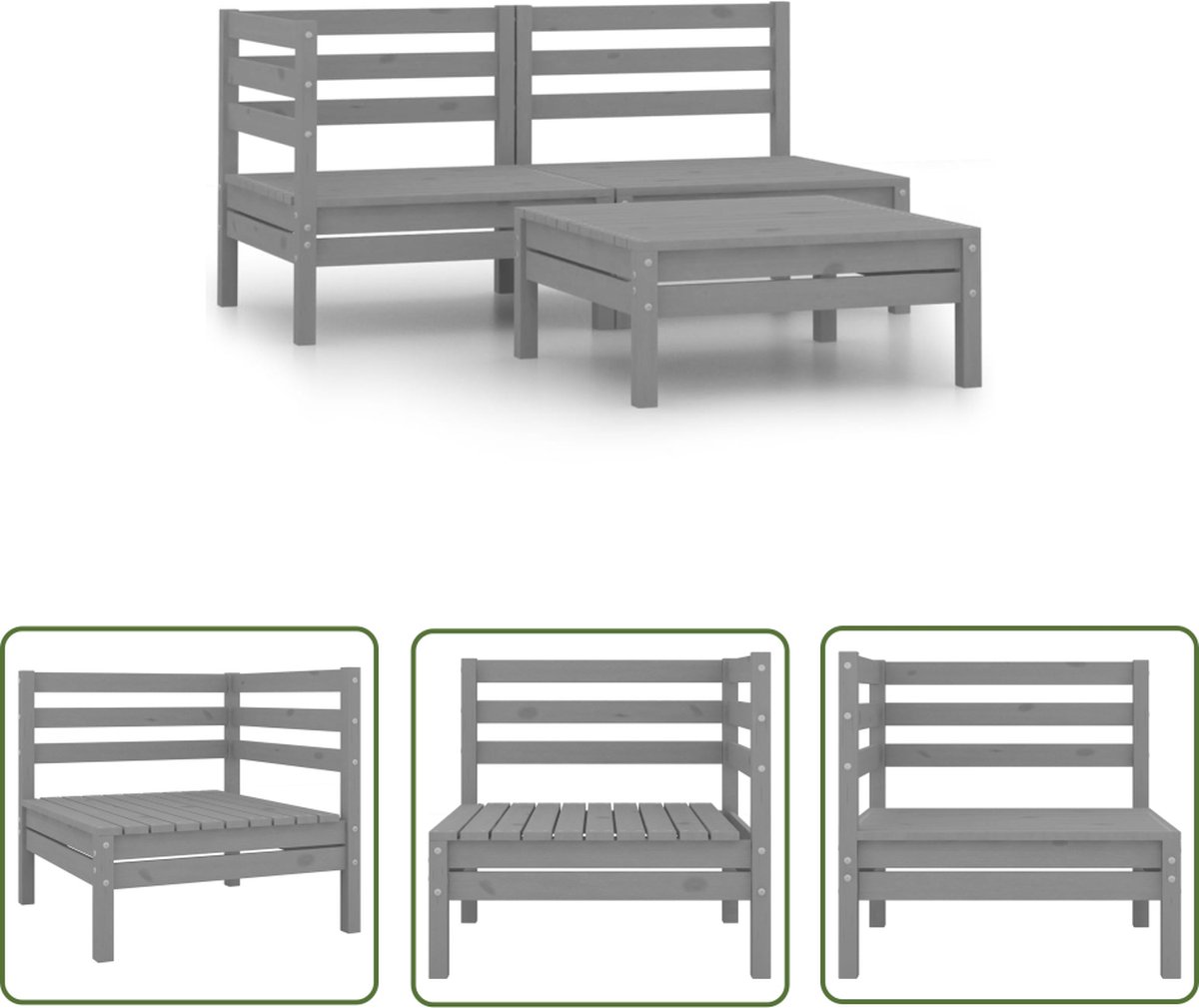 Stijlvol en Duurzaam: The Living Store 3-delige Loungeset van Massief Grenenhout in Grijs
