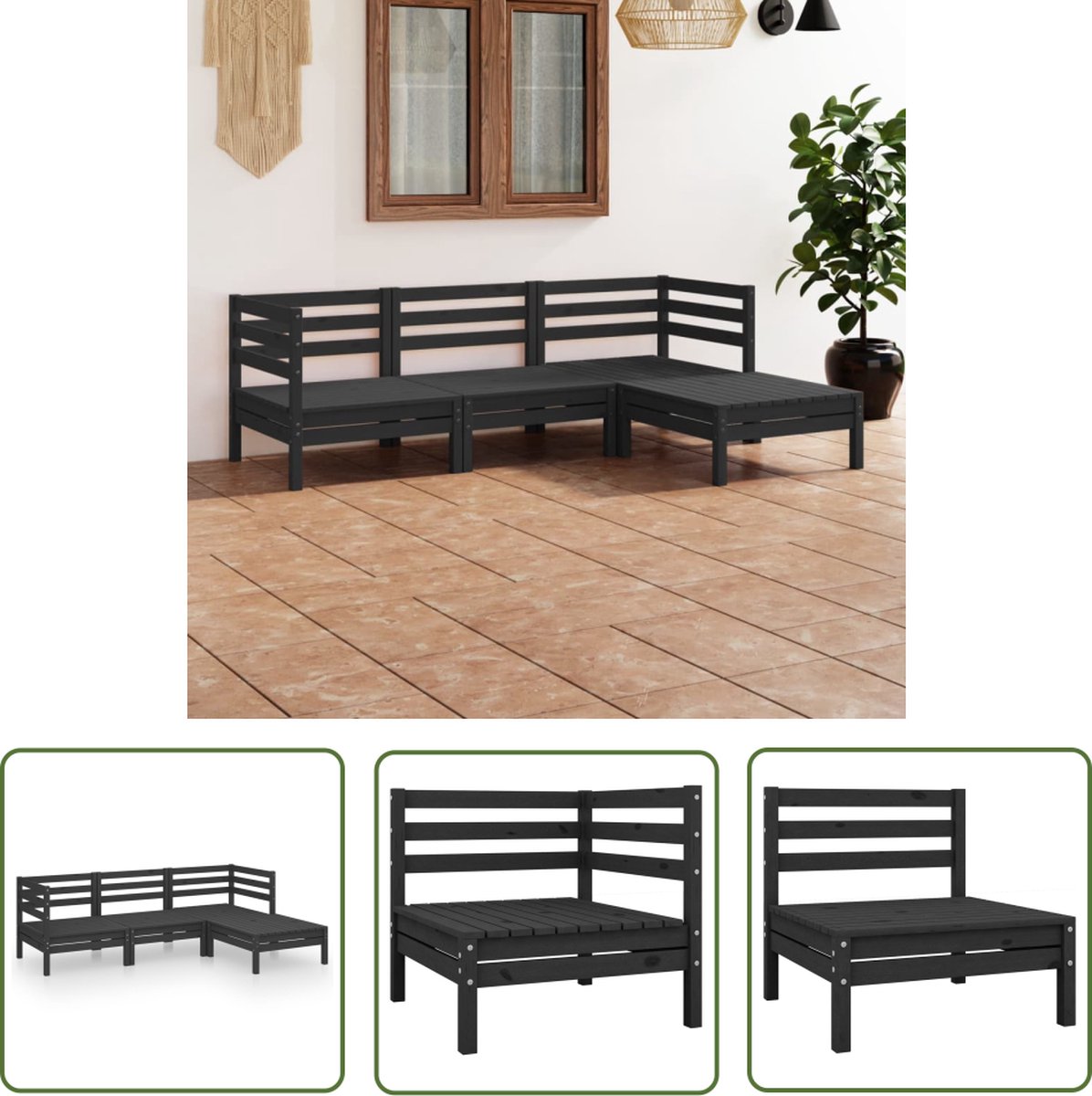 The Living Store 4-delige Loungeset massief grenenhout zwart – Tuinmeubles – Lounge Set – Houten Bank – Buitendecor – Patio Furniture