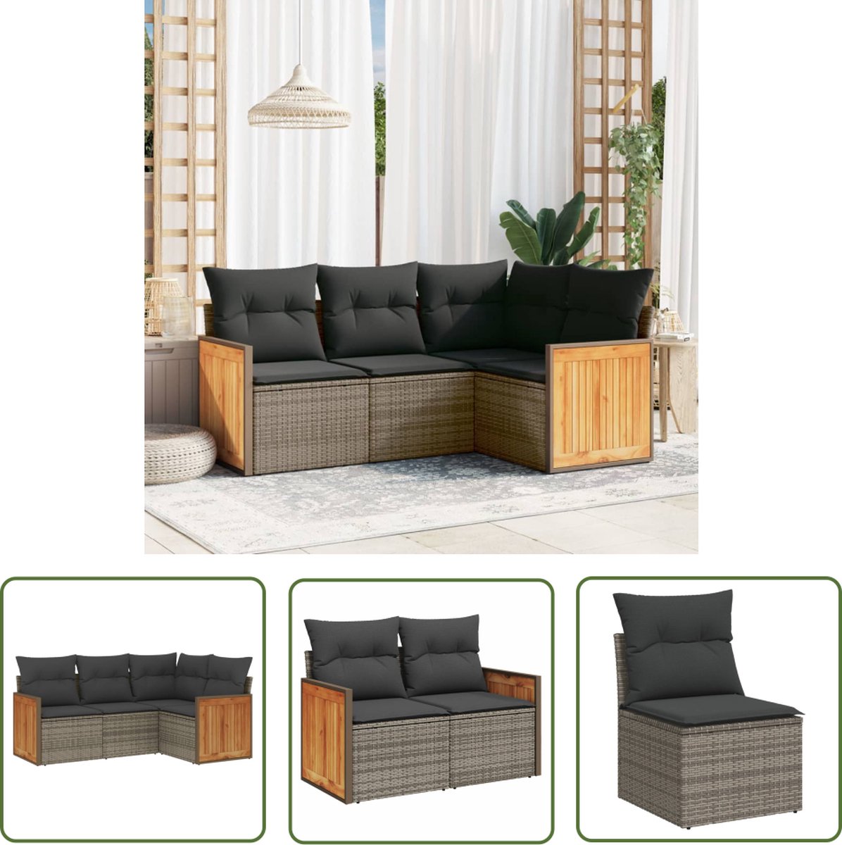 The Living Store 4-delige Loungeset met kussens poly rattan grijs – Loungeset – Tuinset – Lounge Set – Buitendecoratie – Outdoor Furniture