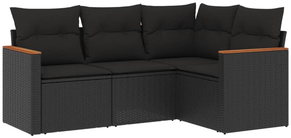 The Living Store 4-delige Loungeset met kussens poly rattan zwart – Loungeset – Tuinset – Tuinmeubels – Lounge Set – Outdoor Furniture