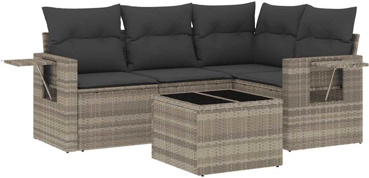 The Living Store 5-delige Loungeset met kussens poly rattan lichtgrijs – Loungebank – Lounge Set – Tuinbank – Buitentijdbanken – Ratan Meubel