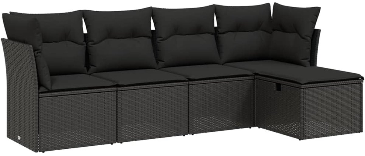 The Living Store 5-delige Loungeset met kussens poly rattan zwart – Loungeset – Tuinset – Buitendecoratie – Loungehoek – Relaxstoel