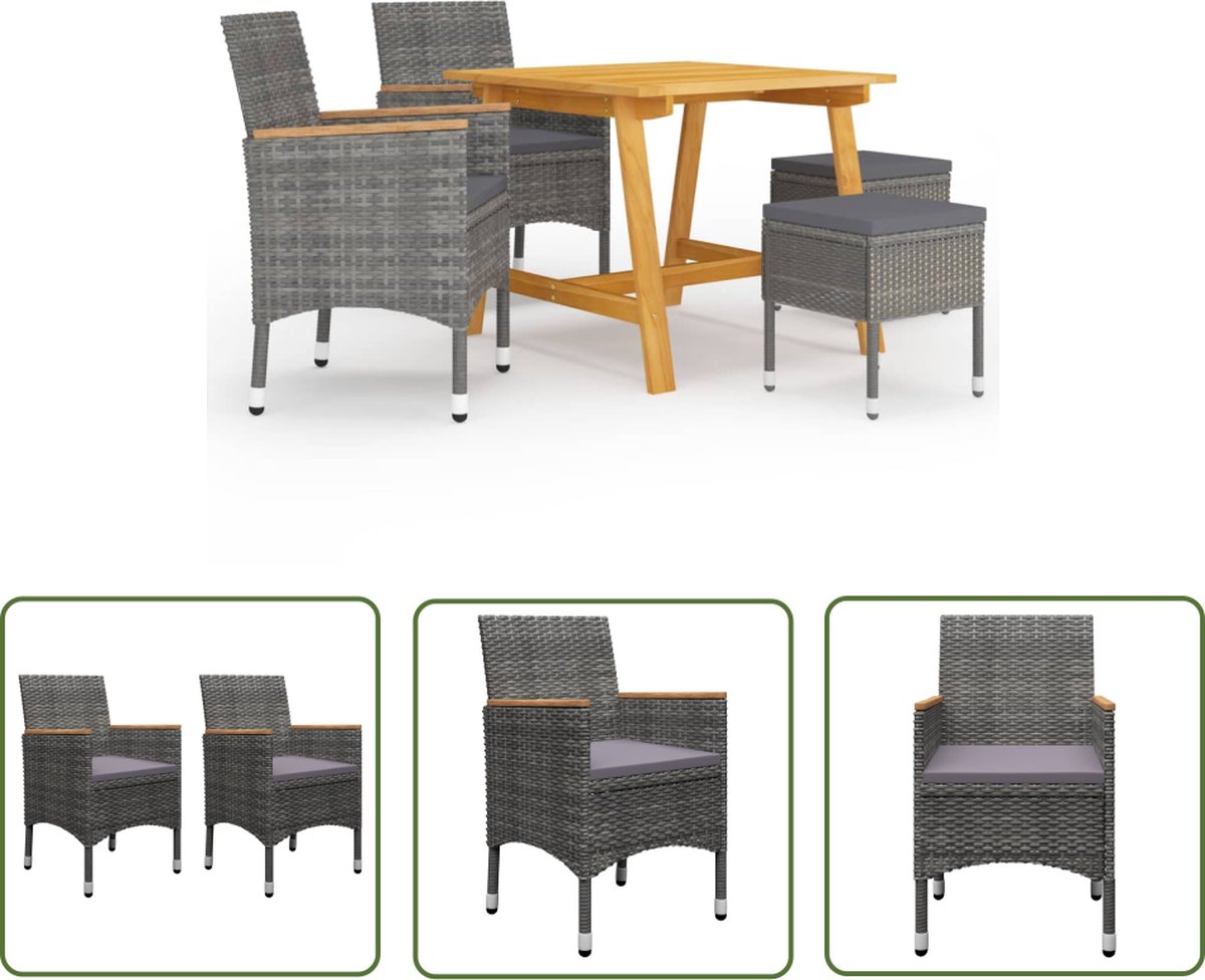The Living Store 5-delige Tuinset grijs – Tuinstoel – Eetkamerset – Buitentafel – Acacia Hout – Ratan Meubilair