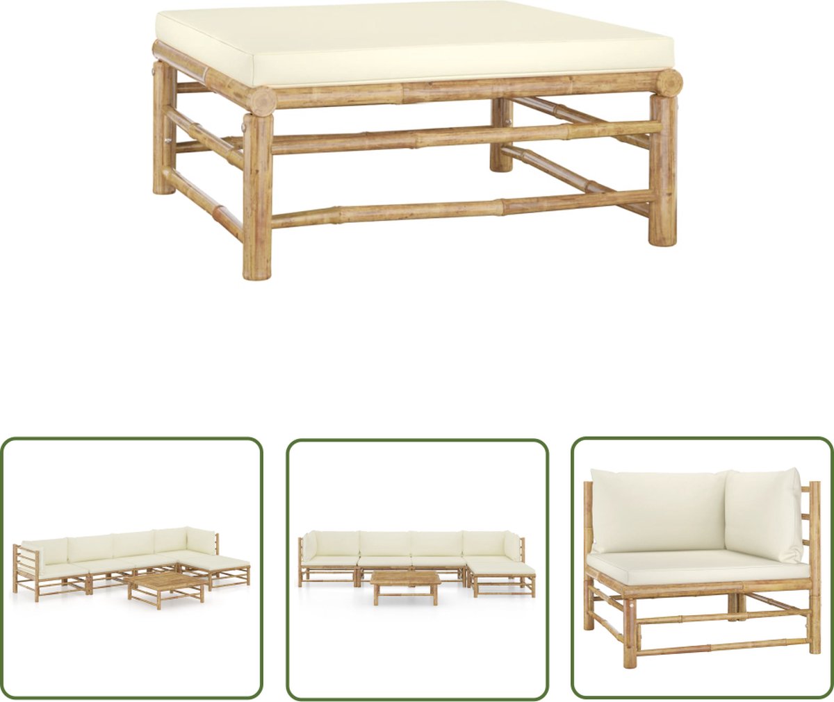 The Living Store 6-delige Loungeset met crèmewitte kussens bamboe – Bamboelounge – Loungebank – Buitendiner – Tuinlounge – Teaktuinstoel
