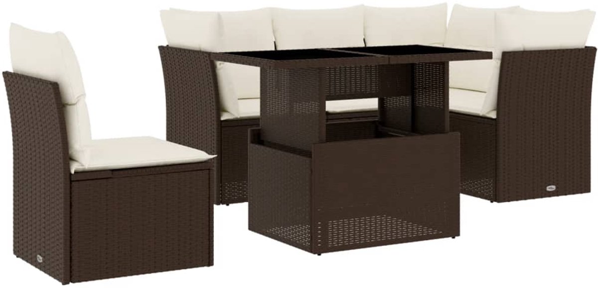 The Living Store 6-delige Loungeset met kussens poly rattan bruin – Loungeset – Tuinmeubels – Lounge Set – Buitendecoratie – PE-rattan