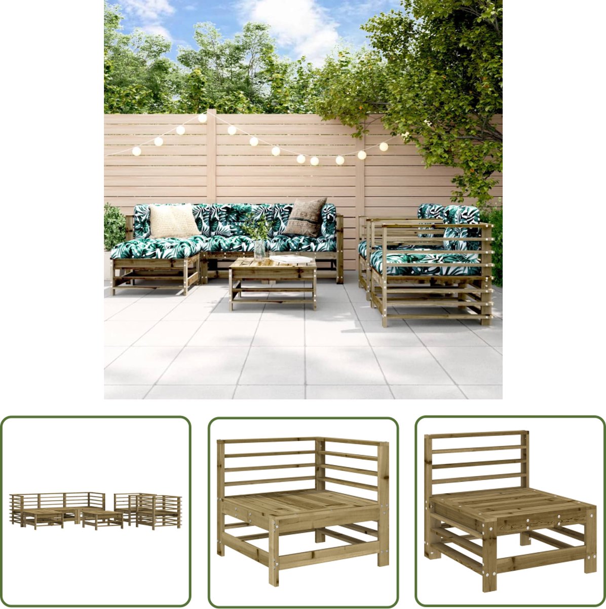 The Living Store 7-delige Loungeset geïmpregneerd grenenhout – Loungeset – Tuinset – Buitenmeubel – Hout Meubel – Grenenhouten Lounge