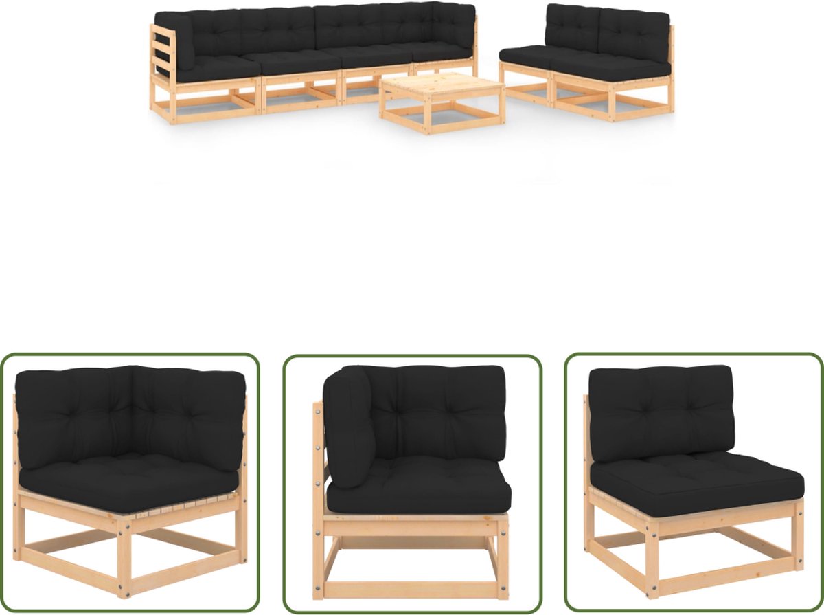 The Living Store 7-delige Loungeset met kussens massief grenenhout – Tuinstoel – Loungestoel – Buis Stoel – Houten Bank – Buitenkamer