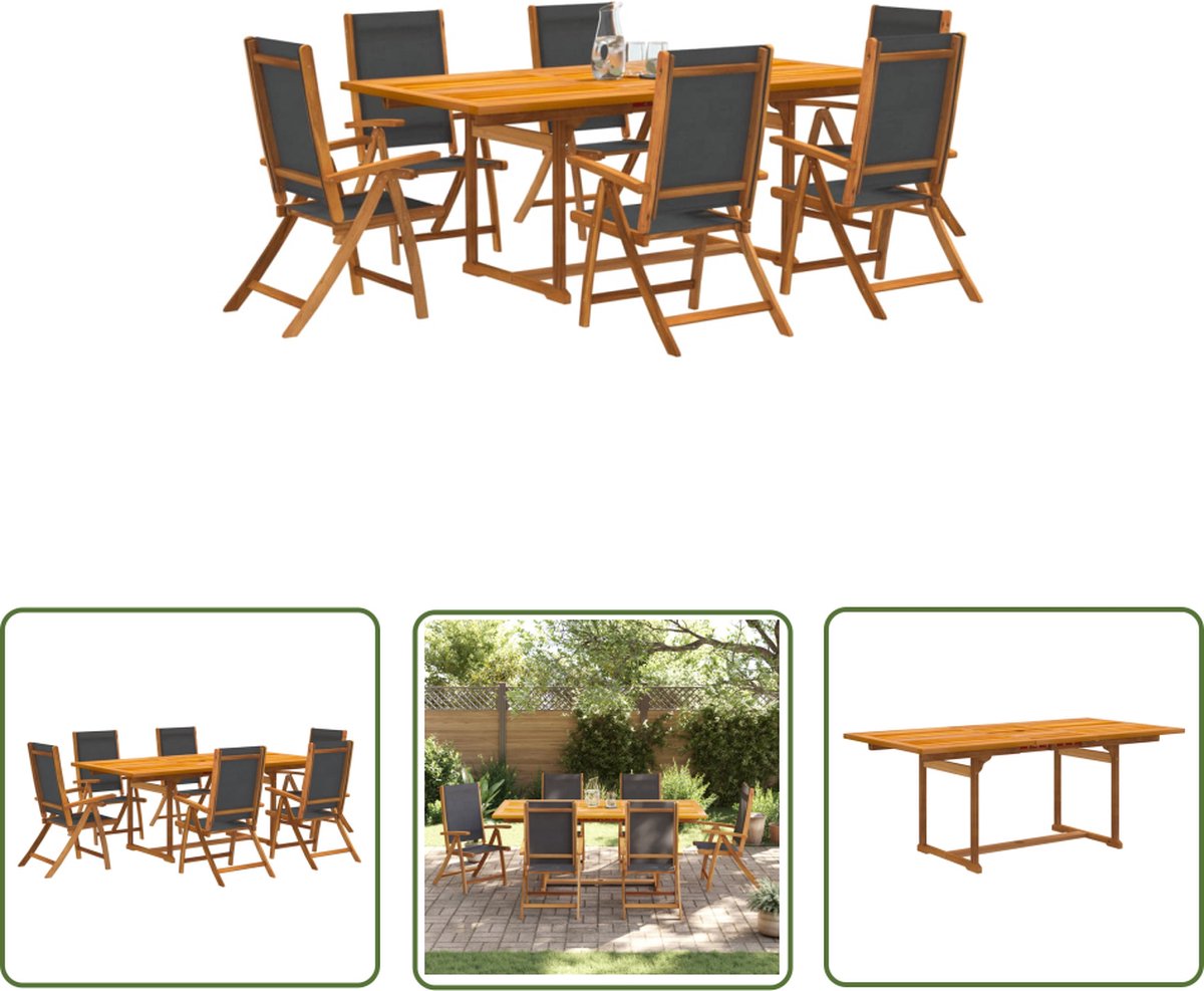 Ontspan en geniet van de buitenlucht met deze 7-delige tuinset van massief acaciahout en textileen van The Living Store. Perfect voor uw eetkamer of terras.