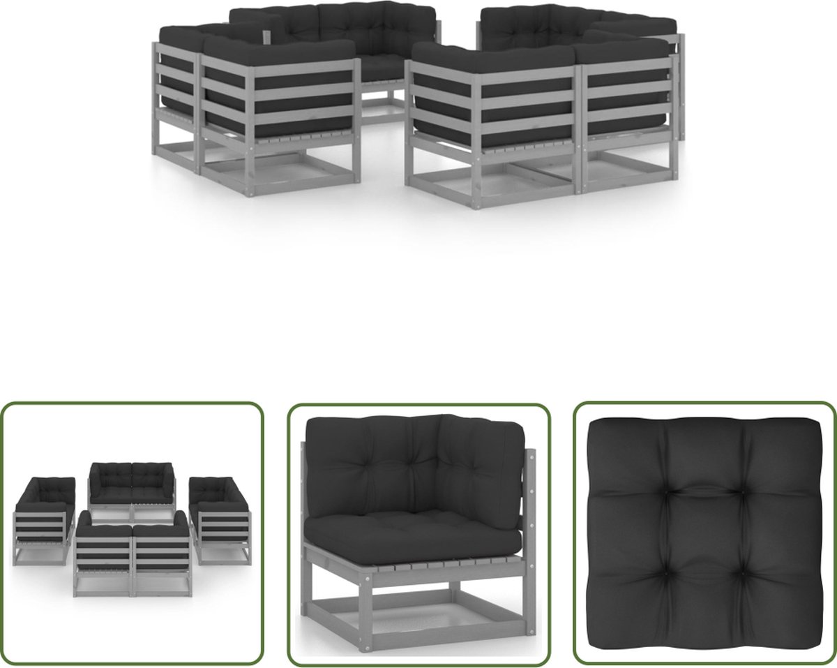 The Living Store 8-delige Loungeset met kussens massief grenenhout