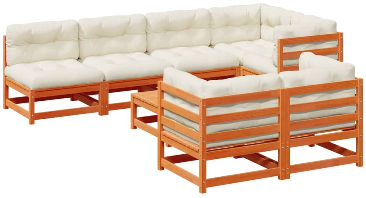 The Living Store 8-delige Loungeset met kussens massief grenenhout wasbruin – Loungeset – Tuinset – Houten Lounge – Buis Meubel – Garden Furniture