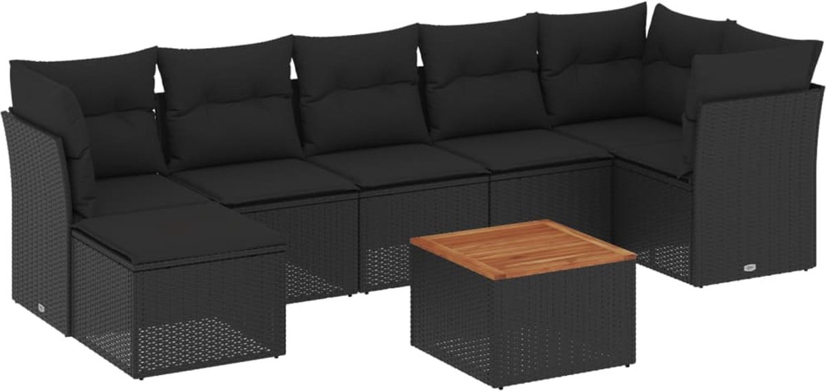 The Living Store 8-delige Loungeset met kussens poly rattan zwart – Loungeset – Lounge Set – Tuinlounge – Buitentijd – Outdoor Furniture