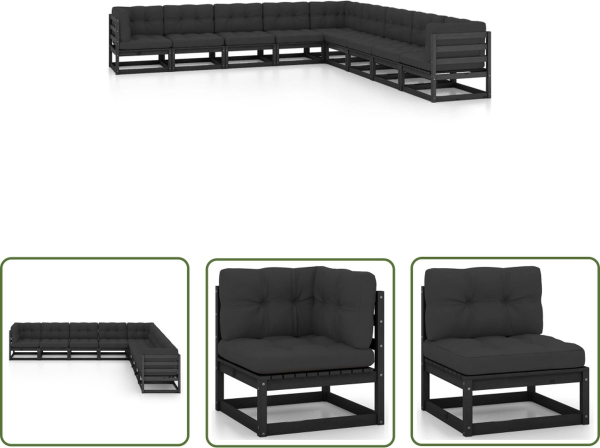 The Living Store 9-delige Loungeset met kussens massief grenenhout zwart – Tuinmeubels – Lounge Set – Tuinset – Hout – Grenenhout