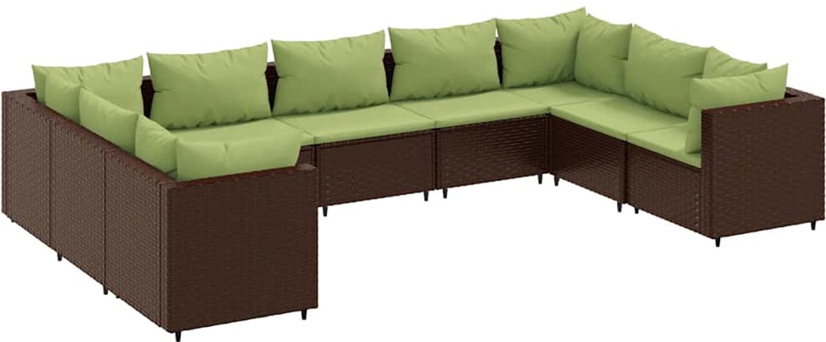 The Living Store 9-delige Loungeset met kussens poly rattan bruin – Loungeset – Tuinset – Tuinmeubels – Lounge Set – Outdoor Furniture