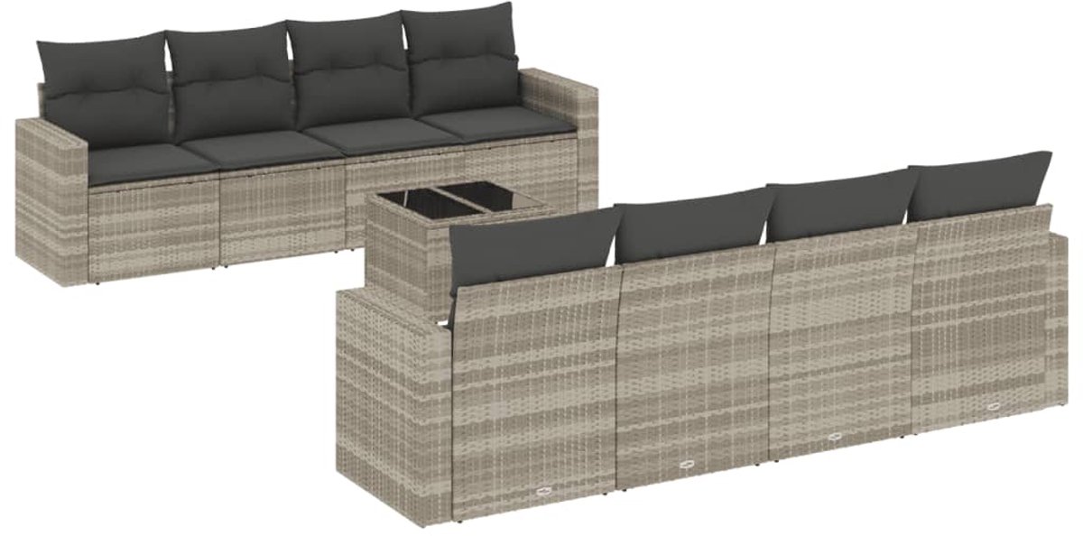 The Living Store 9-delige Loungeset met kussens poly rattan lichtgrijs – Loungebank – Lounge Set – Buitendecor – Tuinmeubels – Tuinlounge