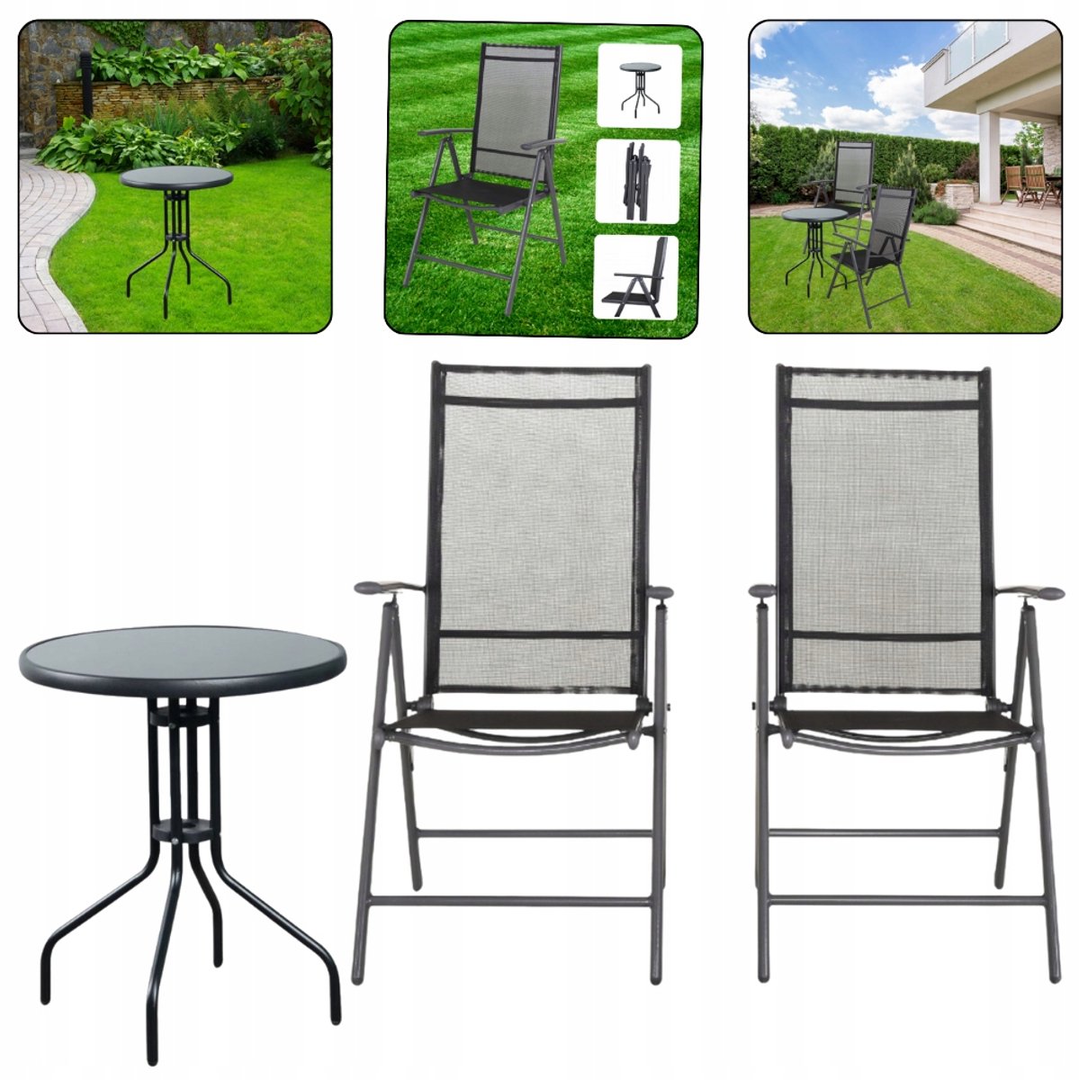Set LERU MATARO tuinstoelen met verstelbare rugleuning + tafel – comfort en elegantie op uw balkon, terras of tuin! Bent u op zoek naar meubilair dat u optimaal comfort biedt terwijl u buiten ontspant? Onze set LERU MATARO tuinstoelen met verstelbare rugleuning is de perfecte oplossing! Dankzij de kantelhoekverstelling kunt u de stoel aanpassen aan uw behoeften – of u nu wilt ontspannen of eten. Ontspan zoals u wilt! Volledig verstelbare rugleuning?Waarin onderscheidt deze set zich van andere? Dankzij de verstelbare rugleuning kunt u de hellingshoek aanpassen aan uw wensen! Wilt u rechtop zitten en uw ochtendkoffie drinken? Of misschien buigt u zich liever voorover en leest u een boek? ? Of gewoon zo veel mogelijk achteroverleunen en een dutje doen in de frisse lucht? ? Dankzij de meertrapsverstelling vindt u snel en eenvoudig de perfecte positie – en dat allemaal moeiteloos! Belangrijkste kenmerken: Verstelbare rugleuning Dankzij de verschillende verstelniveaus kunt u de hoek van de rugleuning eenvoudig aanpassen, waardoor de stoel zowel geschikt is om aan tafel te zitten als om comfortabel in een halfliggende positie te rusten. Comfortabel en ergonomisch De stoelen zijn ontworpen met het oog op gebruiksgemak. De hoge rugleuning en armleuningen bieden optimale ondersteuning voor rug en armen, waardoor u lang en comfortabel kunt zitten. Hoogwaardige afwerking De constructie van de stoelen en tafel is gemaakt van hoogwaardig gepoedercoat staal, wat corrosiebestendigheid en een lange levensduur van het meubilair garandeert, zelfs bij intensief gebruik buitenshuis. Duurzame stofDe zitting en rugleuning zijn bekleed met ademend textileen mesh, dat bestand is tegen UV-straling en vocht. Dit materiaal is flexibel, comfortabel en eenvoudig schoon te houden: veeg het gewoon af met een vochtige doek. Opvouwbaar en compactDe stoelen kunnen binnen enkele seconden worden opgevouwen en zijn daardoor eenvoudig op te bergen in kleine ruimtes. De perfecte oplossing voor kleine balkons, terrassen of voor opslag buiten het seizoen. Stabiele tafelDe set wordt gecompleteerd door een stijlvolle metalen tafel met een duurzaam blad. Door het formaat is het ideaal voor het plaatsen van een kop koffie, een boek of een hapje, waardoor er een gezellig plekje ontstaat om te ontspannen. Afmetingen:Stoel: Totale hoogte: 106 cm Hoogte na uitklappen: 87 cm Zitdiepte: 45 cm Zitbreedte: 56 cm Zithoogte vanaf de grond: 43 cm Totale lengte na uitklappen: 102 cm Tafel: Diameter tafelblad: 60 cm Hoogte: 70 cm Perfecte keuze voor: Tuin Balkon Terras Restaurants en cafés Campings en volkstuinen Buitenrecreatiegebieden Dankzij het moderne design, de hoogwaardige afwerking en de uitzonderlijke functionaliteit is de LERU MATARO set een aanwinst voor zowel particuliere tuinen als commerciële ruimtes. Het is een combinatie van comfort, elegantie en duurzaamheid!Wacht niet langer, bestel nu en geniet van optimaal comfort in de frisse lucht!