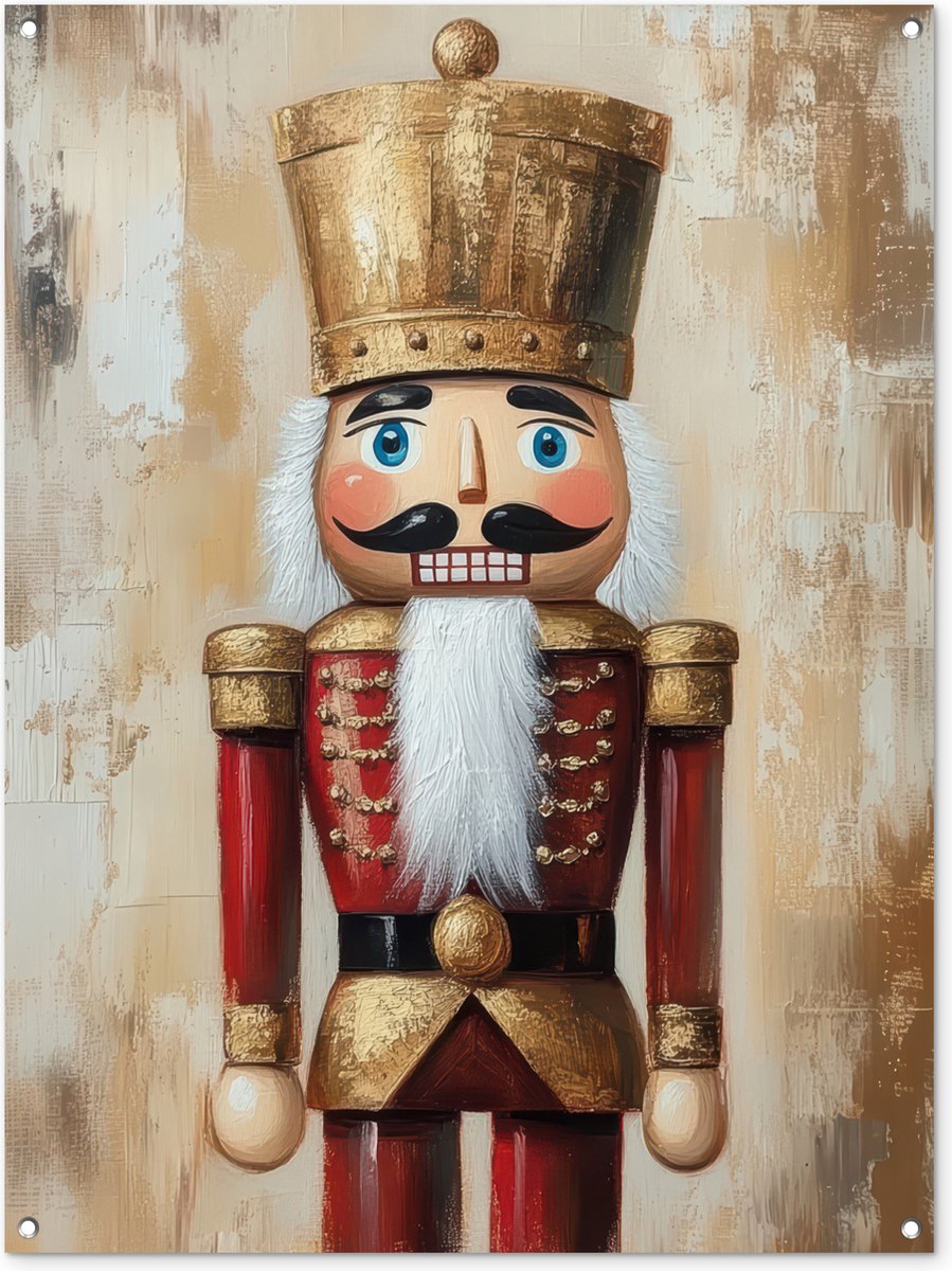 Tuinposter 90×120 cm – Tuindecoratie Kerst – Poppetje – Abstract – Poster voor in de tuin – Buiten decoratie – Schutting tuinschilderij – Tuindoek muurdecoratie – Wanddecoratie balkondoek