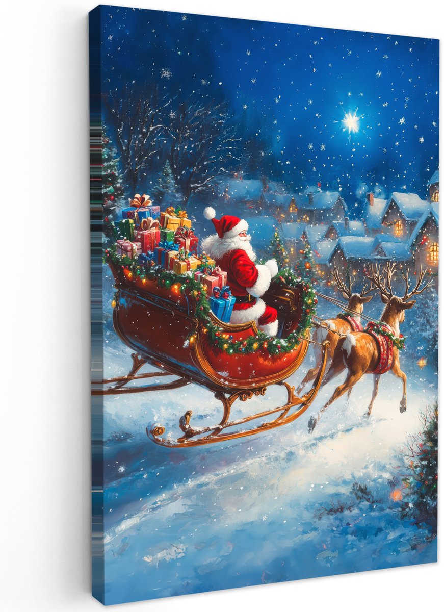 Tuinschilderij voor buiten 100×150 cm – Tuindecoratie Kerstman – Rendier – Kerst – Sneeuw – Tuinposter op canvas – Tuin muurdecoratie – Buitenschilderij decoratie – Schutting wanddecoratie – Buitencanvas – Kerstversiering – Kerstdecoratie
