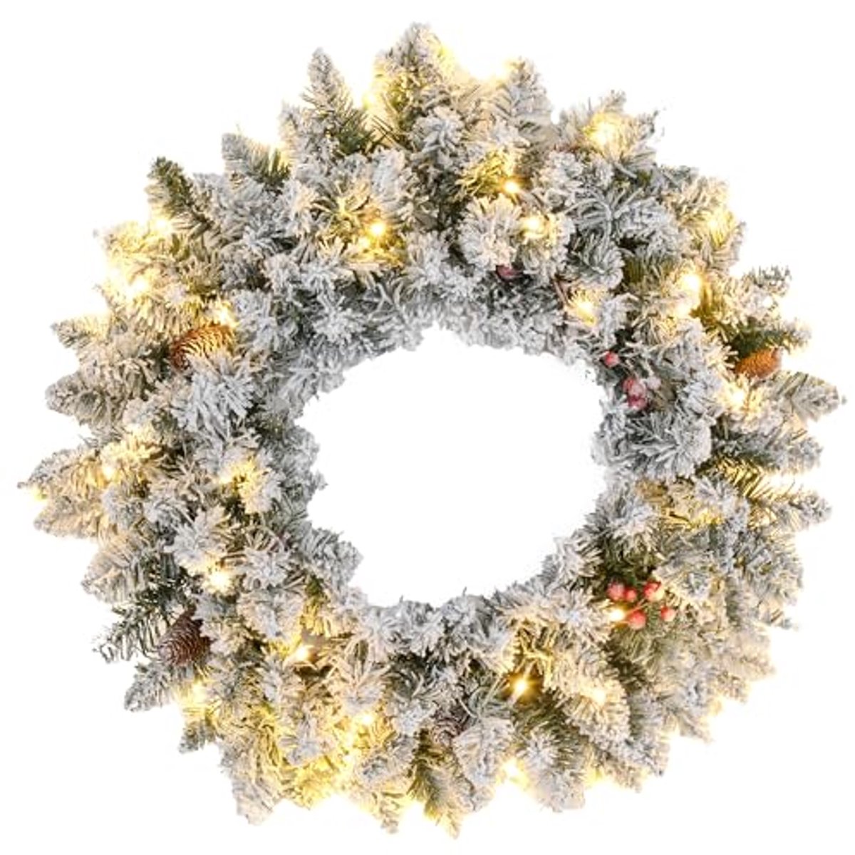 Voor-deur Kerstkrans met LED Verlichting – 60 cm, Winterdecoratie met Dennenappels en Bessen